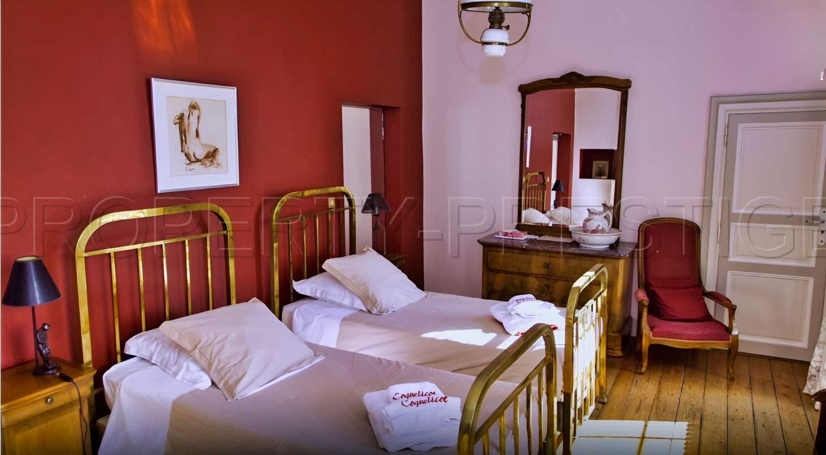 Ce magnifique château, situé dans le Gers, est un lieu magique et enchanteur, réputé pour son cadre idyllique, ses 70 hectares de terres vallonnées et son lac de 19 ha, participant à la beauté du site. Le château a été construit entre 1780 et 1787. Il s'agit d'une élégante demeure du XVIIIe siècle, témoignant de l'architecture de cette époque. Le domaine comprend la bâtisse principale, une chapelle, une orangerie et un pigeonnier. Une surface de 4 Ha a obtenu un permis de construire pour l’implantation de lodges. L'ensemble architectural est harmonieusement intégré dans un paysage vallonné, offrant des vues imprenables sur la chaîne des Pyrénées. La propriété bénéficie d’un cadre naturel exceptionnel où l’on peut apprécier le calme et la quiétude des lieux. C’est véritablement un endroit de ressourcement par excellence !