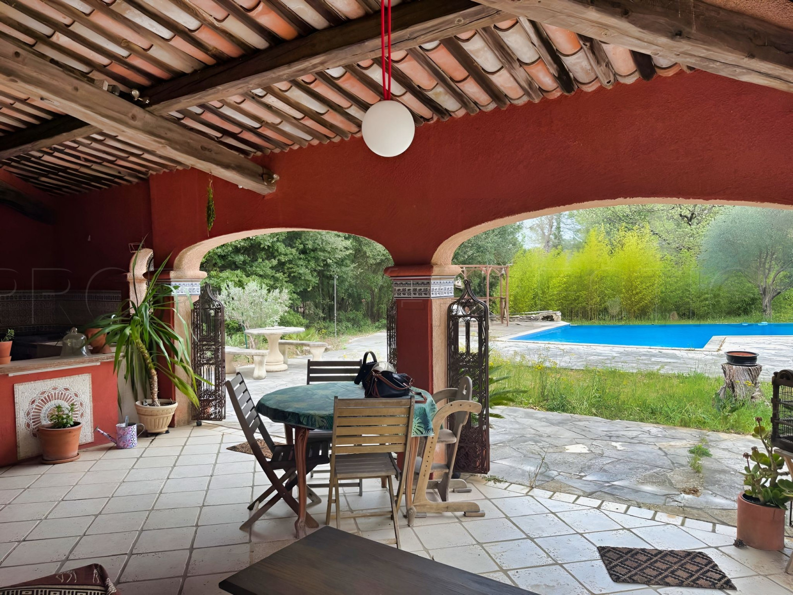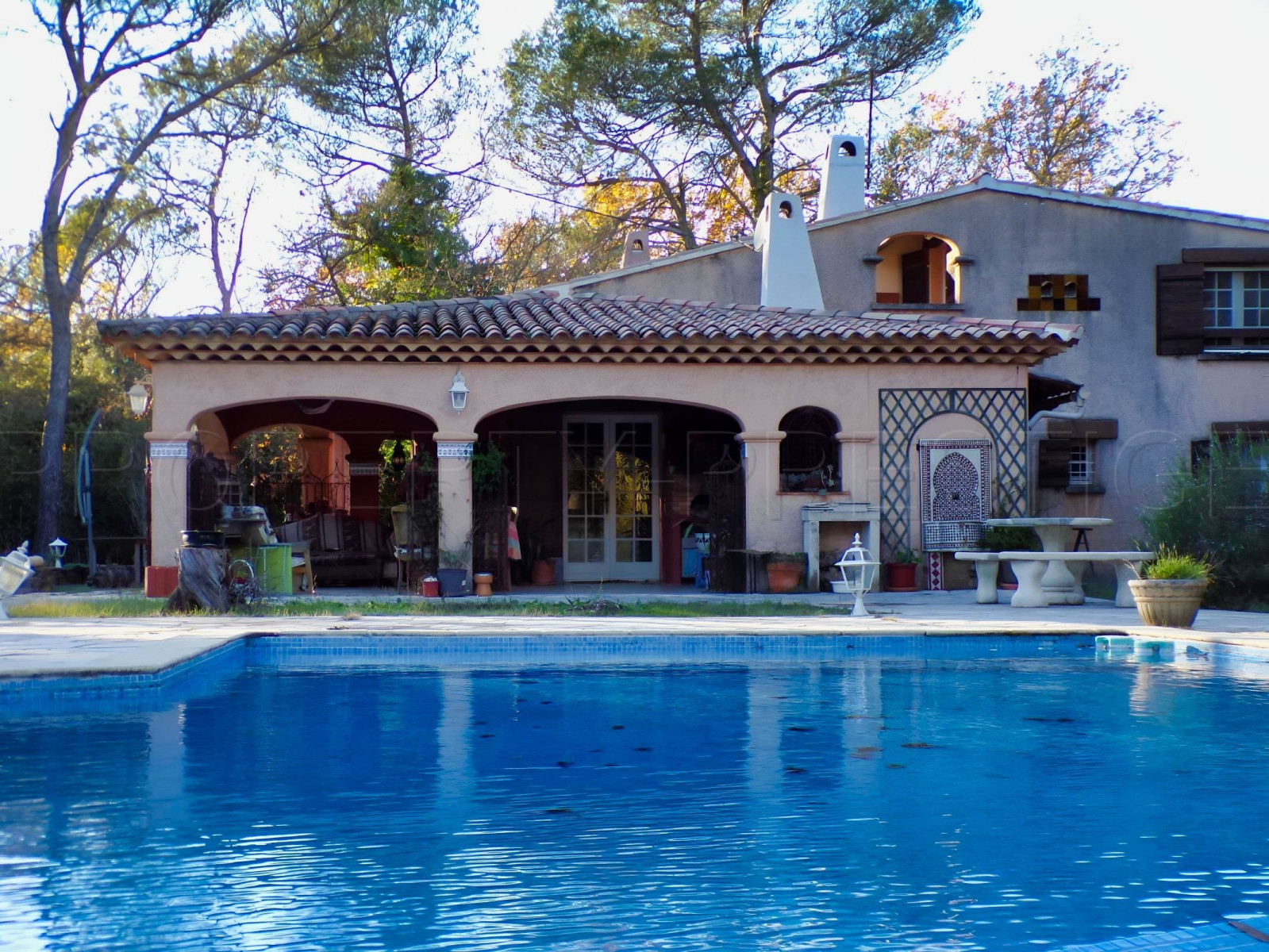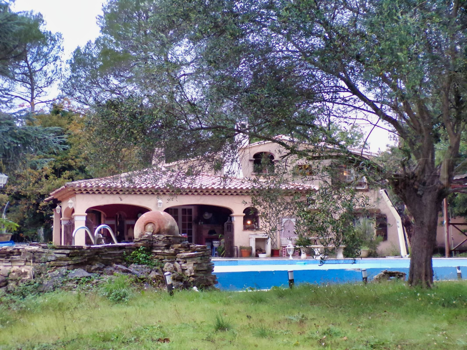 CENTRE VAR DEMEURE PROVENÇALE D’EXCEPTION 350 m² PARC DE 1,6 HECTARES. L’authenticité du Sud, le calme absolu, le potentiel infini. Située au cœur de la Provence Verte, à seulement 15 minutes de l’accès A57 et 25 minutes des plages, découvrez cette propriété de caractère des années 70. Alliant élégance traditionnelle et volumes magistraux, cette demeure est un véritable havre de paix pour les amoureux de nature et d'architecture authentique. UN INTÉRIEUR AU CHARME INTEMPOREL. Dès l'entrée, vous serez séduit par les matériaux nobles : plafonds provençaux, boiseries et murs épais garantissant une inertie naturelle. Espace de vie : Une pièce de réception monumentale avec plafond cathédrale. Le salon s’articule autour d’une cheminée magistrale à colonnes, créant une atmosphère chaleureuse et solennelle. Cuisine : Espace semi-ouvert avec coin repas, prolongé par un grand cellier fonctionnel. Espace nuit (RDC) : 2 chambres spacieuses, dont une avec un grand dressing, une salle d’eau et un WC. Étage : Un escalier traditionnel mène à une mezzanine salon/bibliothèque surplombant le séjour. Vous y trouverez 2 autres grandes chambres (dont une avec salon/bureau privé), une salle de bains et un WC. UN EXTÉRIEUR TAILLÉ POUR L'ÉVASION. Érigée sur un terrain plat et arboré de 1,6 ha, la propriété est un écrin de sérénité sans aucun vis-à-vis. Piscine & Détente : Une superbe piscine à débordement en forme libre, entourée de larges terrasses. Cuisine d'été : Une vaste terrasse couverte équipée d'une véritable cuisine extérieure, idéale pour vos réceptions estivales. Potentiel équestre : Le terrain plat accueille déjà une dépendance avec boxes à chevaux. Dépendance : Un garage exceptionnel de 90 m², partiellement aménagé, offrant de multiples possibilités (atelier, bureau, gîte indépendant). LES ATOUTS TECHNIQUES : Chauffage : Pompe à chaleur (PAC) + convecteurs électriques. Eau : Forage privé (économie et autonomie). À prévoir : Travaux de rafraîchissement pour révéler tout le potentiel de la demeure et mise aux normes de l'assainissement (fosse septique). Notre avis : Une propriété rare qui a su traverser les âges en conservant son âme. Ses volumes, son plafond cathédrale et son terrain plat en font un produit d'exception dans le secteur. Idéal pour une famille, un projet de chambres d'hôtes ou des propriétaires de chevaux.